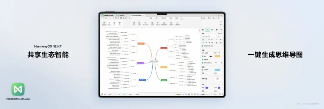 全新亿图脑图MindMaster鸿蒙版1:1还原了桌面级体验,为华为平板带来了全量绘图功效,支持项目管理、演示、绘图三大场景,并集成了强盛便捷的AI能力,支持一键天生头脑导图,让用户可高效智能地整理思绪、纪录灵感。