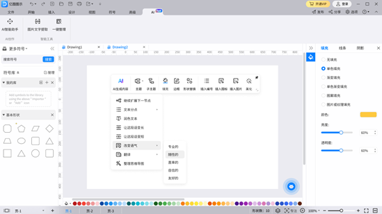 (亿图图示增添AI调解文本功效,可一键改写文本、改变语气)